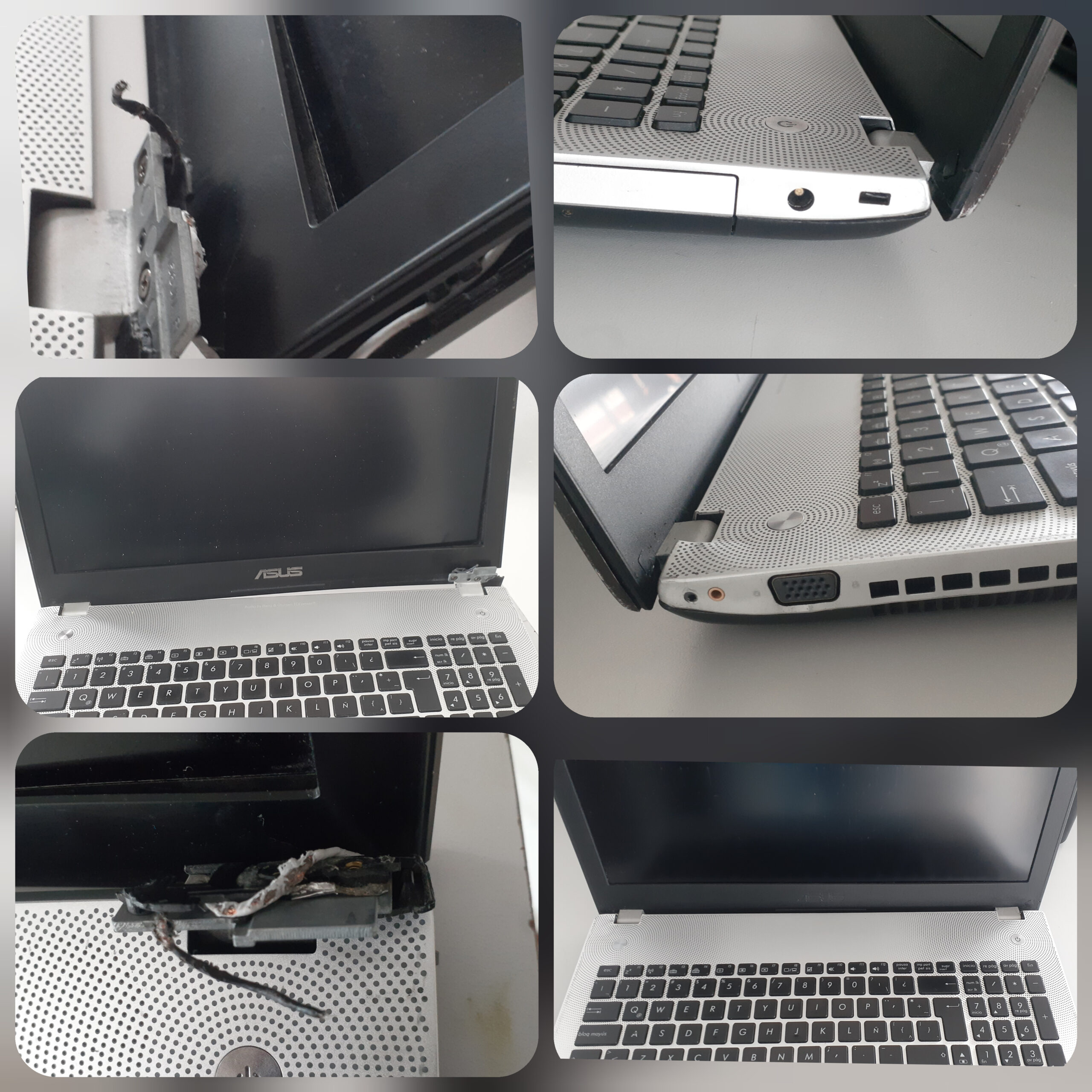 Arreglo de bisagras para portátil: servicio de reparación y ajuste de bisagras en portátiles. Incluye refuerzo de soportes, reemplazo de piezas dañadas y ajuste estructural para recuperar la estabilidad de la pantalla y prolongar la vida útil del equipo.